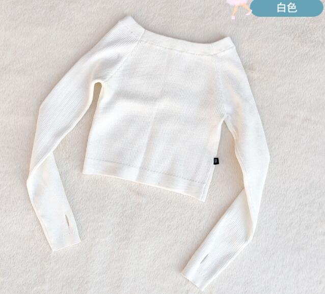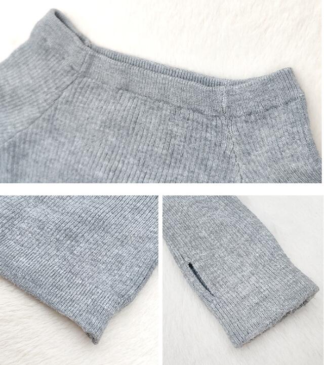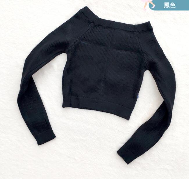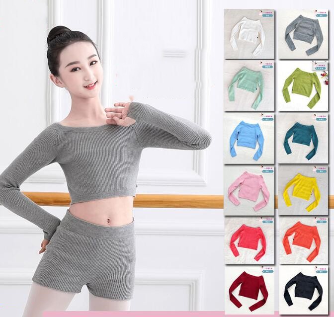 キッズ向けダンス衣装に最適なニット素材の長袖トップスとショートパンツのセットアップです。