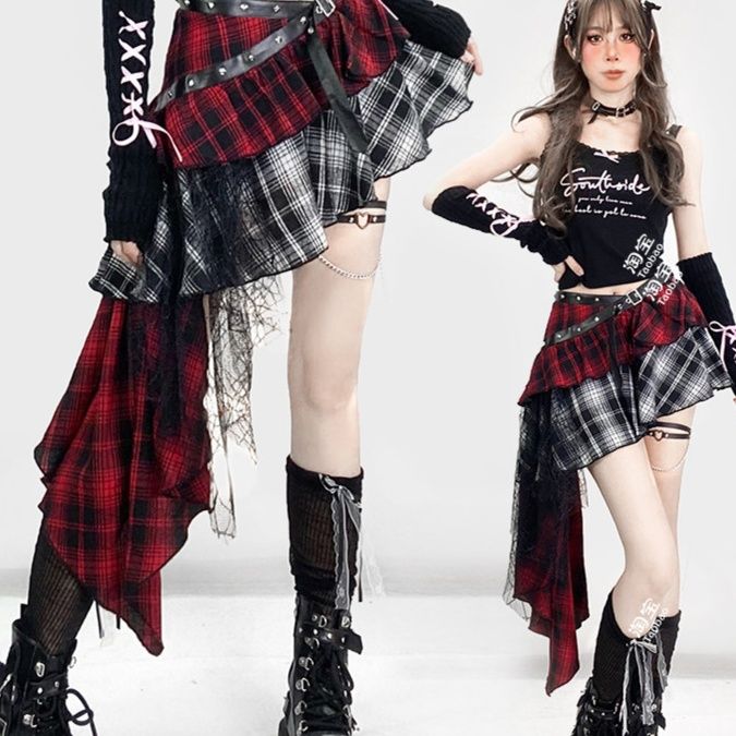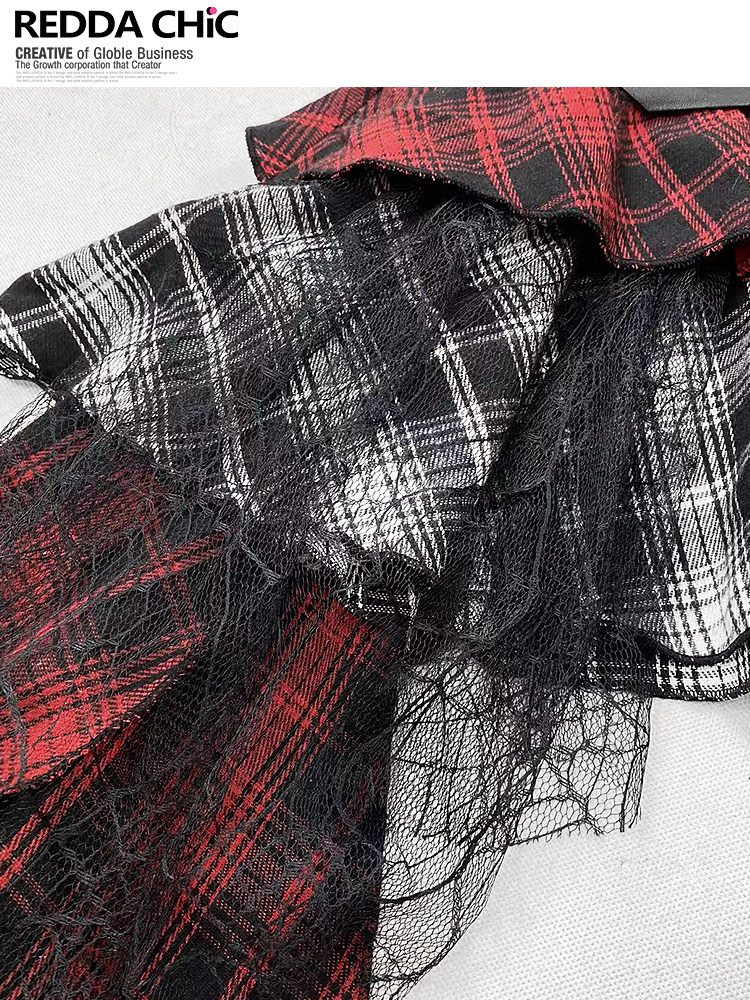 個性的なチェック柄が幾重にも重なる華やかなダンス衣装のキッズモデルです。