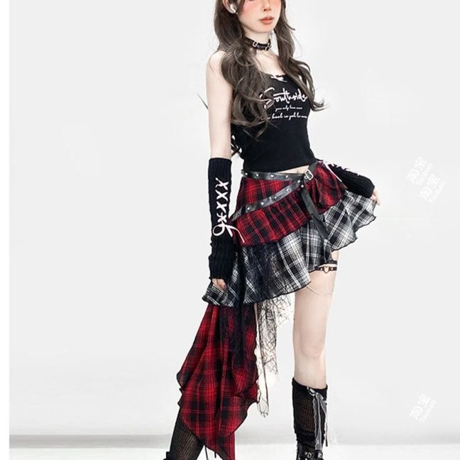 ロックテイストのベルト飾りやチェーンがアクセントになり、かっこよさと可愛らしさが融合した一着です。