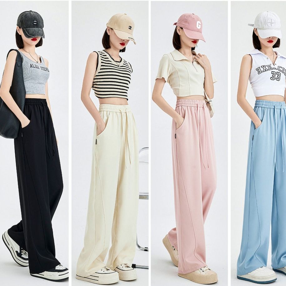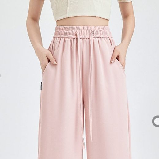 リブ編みのショート丈ポロシャツと、ゆったりとしたワイドパンツの組み合わせで、動きやすさとスタイルを両立しました。
