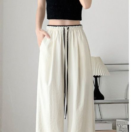 高めのウエストと調節可能な紐デザインが特徴で、リラックスした着心地を実現しています。