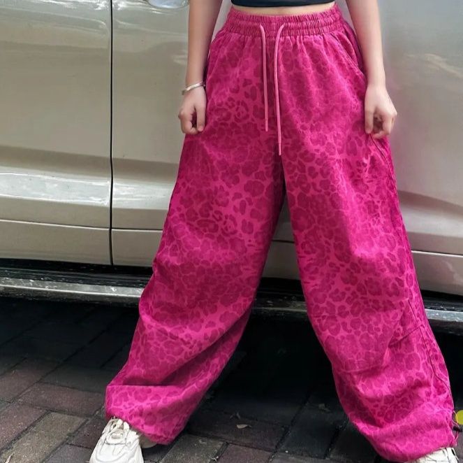 ヒップホップダンスに最適な豹柄デザインのワイドパンツです。
