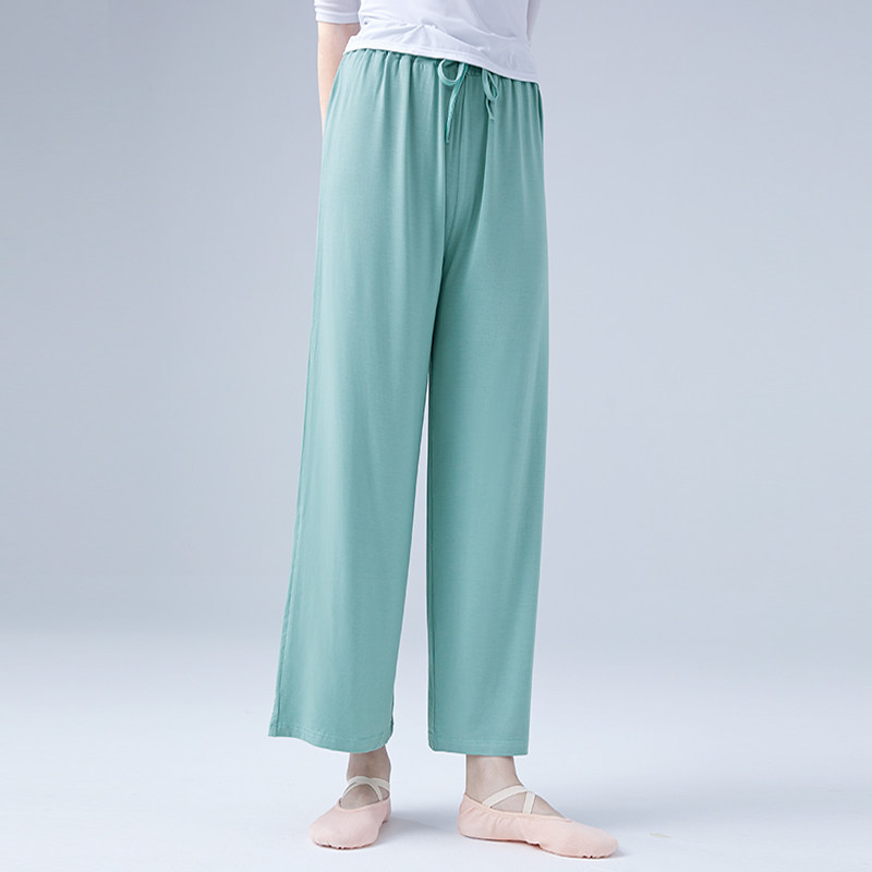 ダンス衣装として最適な柔らかな素材を使用したロングパンツです。 ウエストはゴムと紐の調整機能付きで快適なフィット感を実現しました。 ゆとりのあるストレートシルエットが動きやすさを追求し、ポールダンスやバレエなど様々なレッスンに対応します。 軽やかな生地が身体の動きを妨げず、練習時の快適性を高めてくれる一着です。