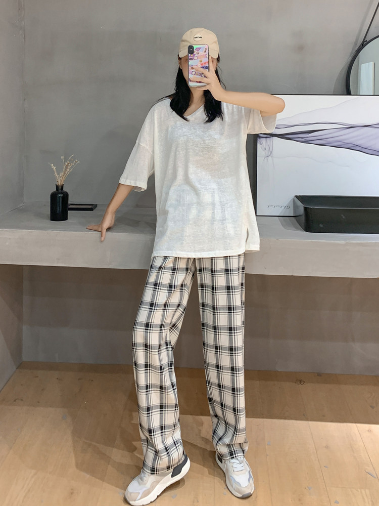 韓国ファッションにインスパイアされたダンス衣装の上下セットです。 ゆったりとしたシルエットのトップスは動きやすさ抜群で、練習着としても最適です。 チェック柄のワイドパンツはトレンド感があり、ストリート系のダンスにぴったり合います。 柔らかい素材で長時間の着用でも快適に過ごせます。 カジュアルなデザインなので普段着としても活躍する万能アイテムです。