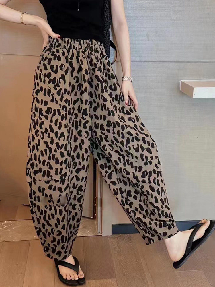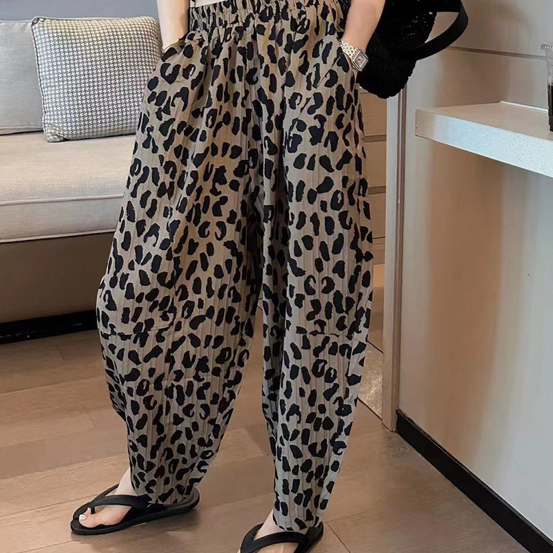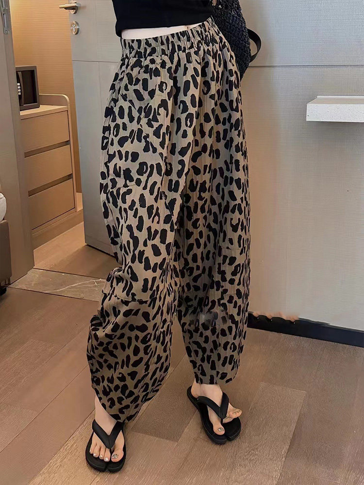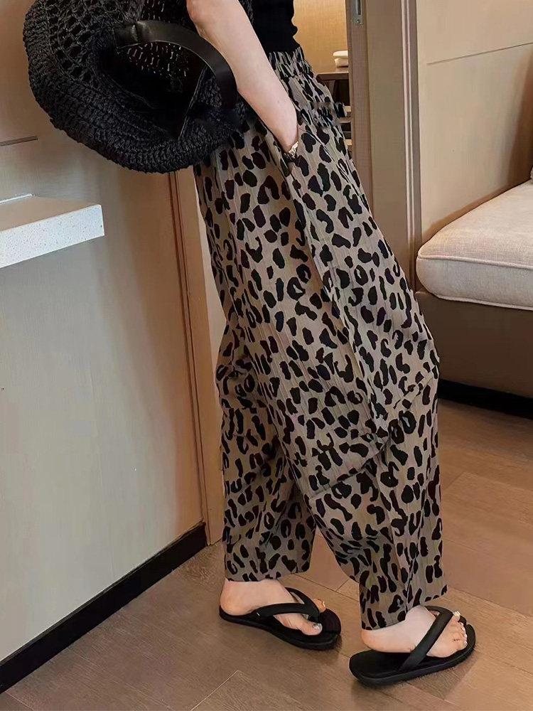 個性的な豹柄が目を引くワイドシルエットのダンス衣装用パンツです。