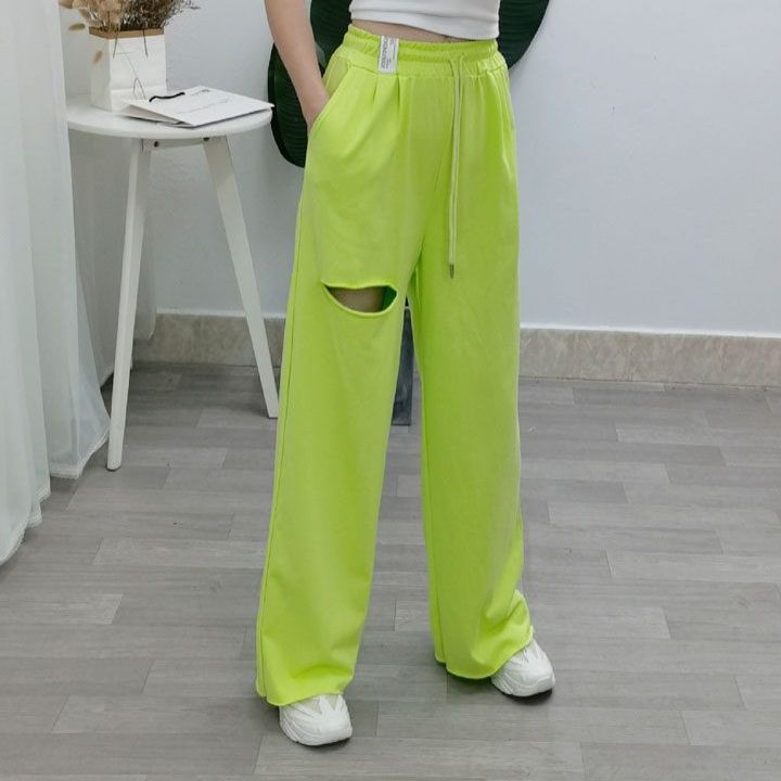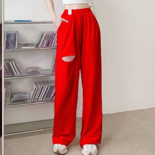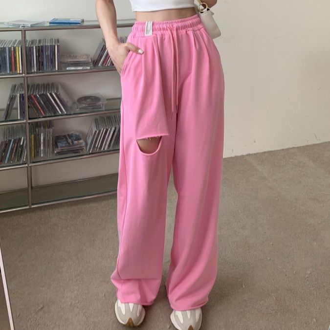韓国発のストリート感溢れるダンス衣装として人気のスウェットパンツです。 膝部分に施された個性的なカットアウトデザインが特徴で、動きやすさとファッション性を両立しています。 ゆったりとしたシルエットで快適な着心地を実現し、ダンスパフォーマンスにも最適です。 ウエストはゴムと紐で調節可能なので、体型を選ばず着用できます。 練習着としても普段着としても活躍する万能アイテムです。