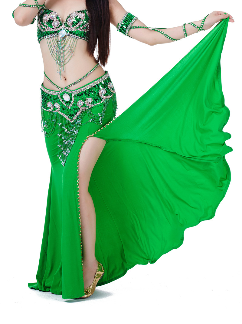 華やかな舞台映えするダンス衣装のベリーダンス用三点セットです。